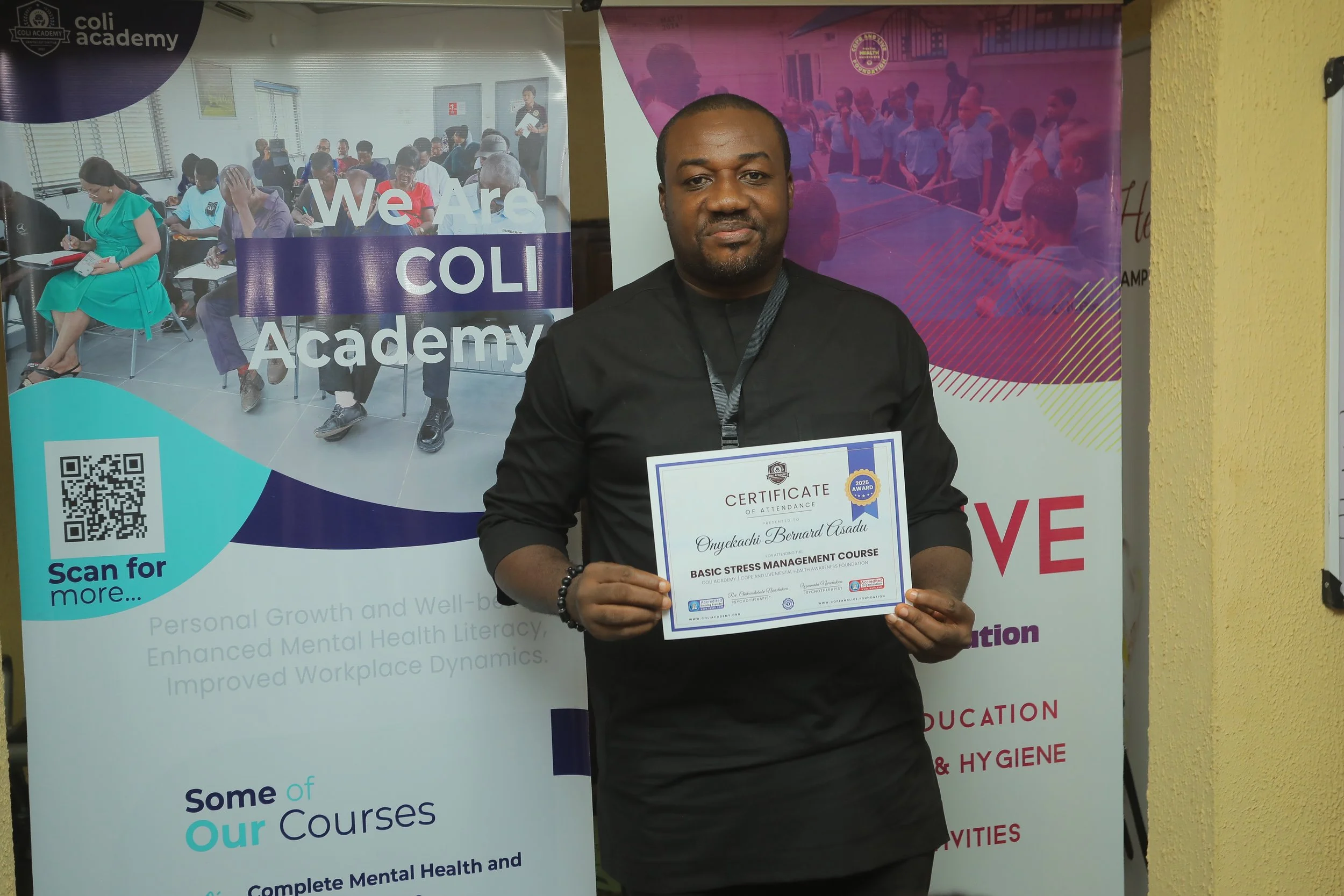 We're pioneers: Our COLI Academy (coliacademy.org) offers accredited training on everything from emotional intelligence bootcamps for kids to corporate resilience workshops for Zenith Bank and Nigerian Breweries staff. We advocate for mental health policies, conduct cutting-edge research, and partner with powerhouses like QAPS (UK), Mental Health Universe (Uganda), Raphatech, Alpha Specialist Hospital, Enugu State Ministry of Child and Gender Affairs, Enugu State Ministry of Agriculture, MTN, and many more. From reintegrating prison returnees to equipping farmers against sector-specific stressors, our collaborative approach creates sustainable, stigma-free ecosystems—because one partnership can amplify thousands of voices.